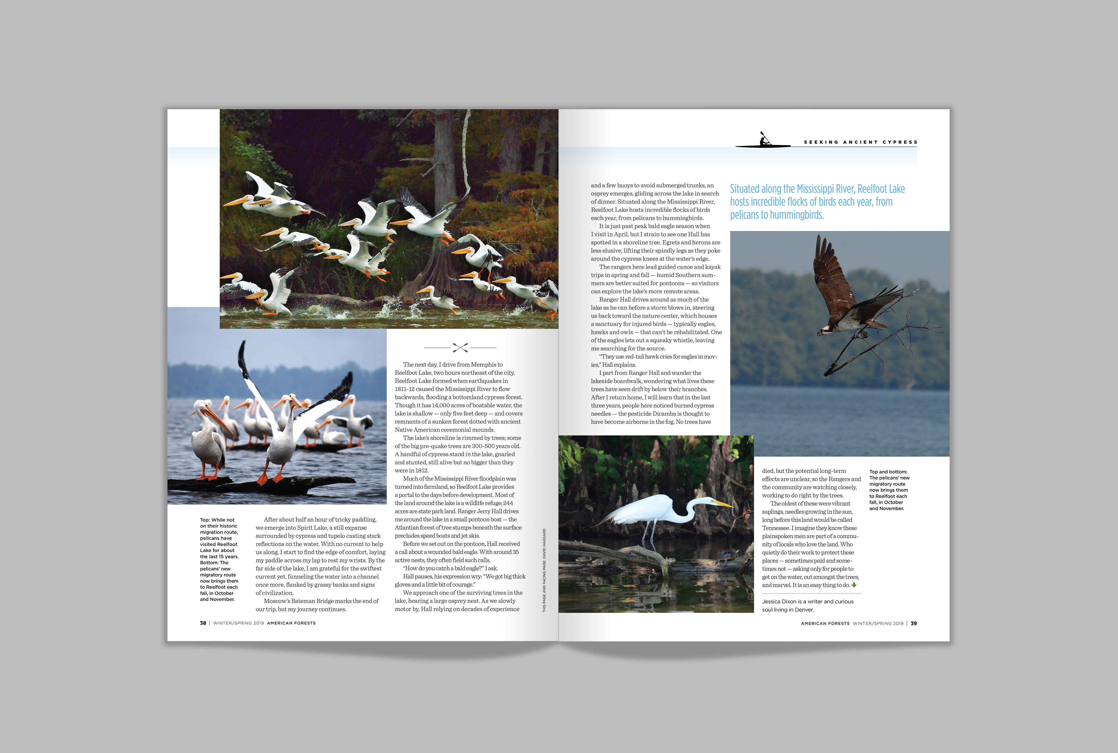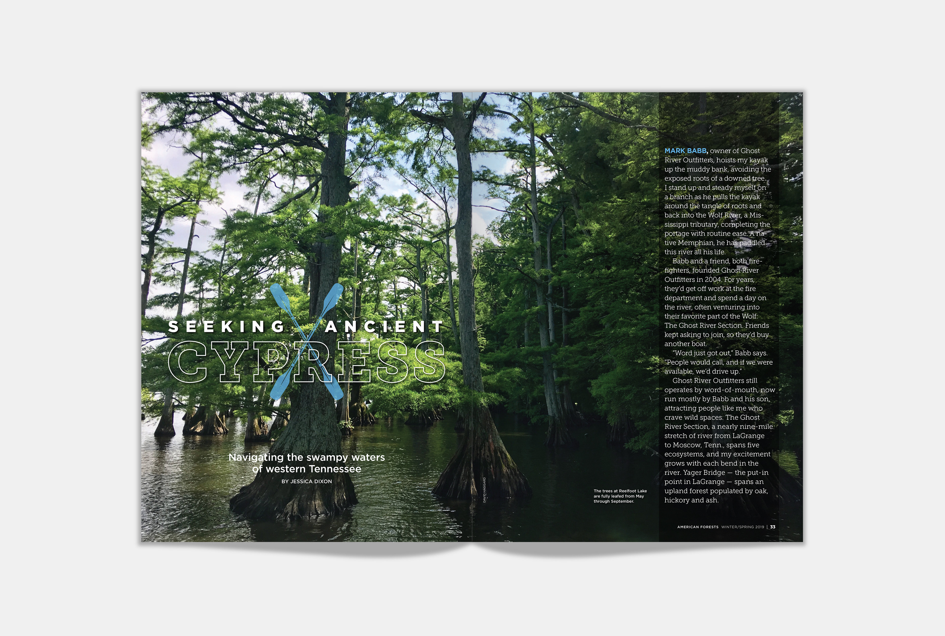 Creative direction and layout, “Seeking Ancient Cypress” feature, Winter/Spring 2019 issue. Photography by David Haggard.